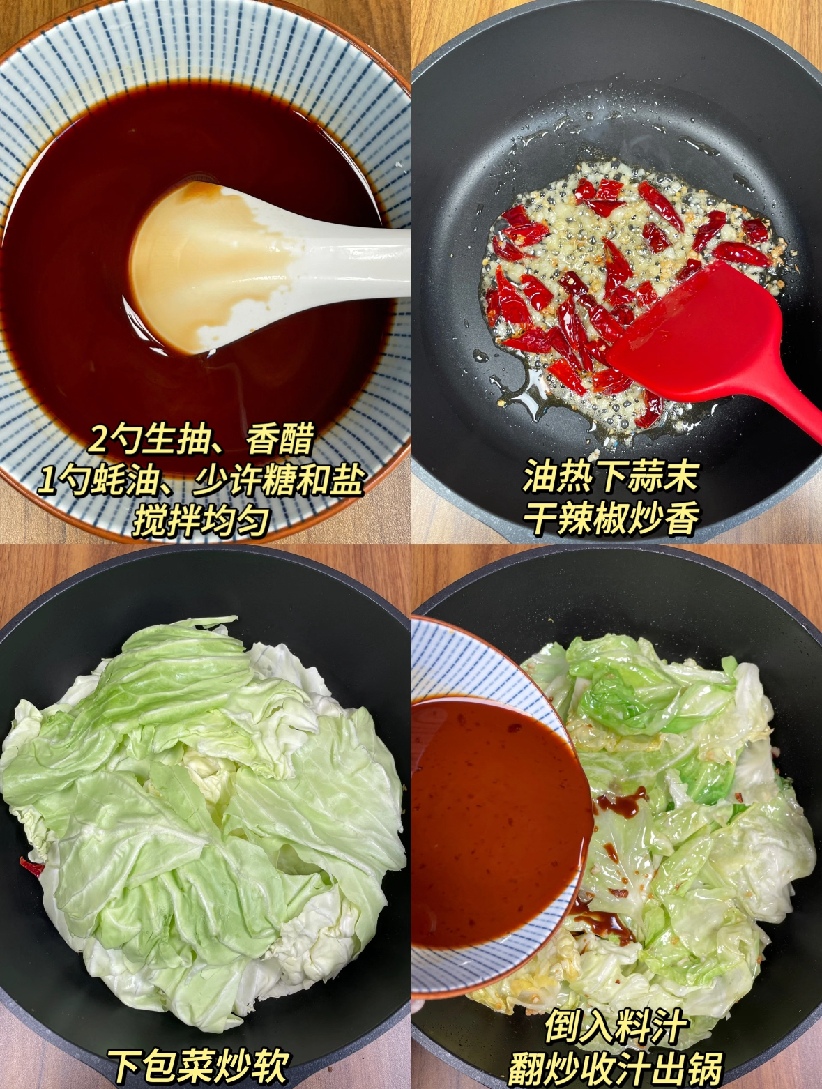 包菜炒到边缘微焦、颜色变得半透明时,沿着锅边淋入调好的料汁。高温下,醋香和酱香激发出来,翻滚的汤汁裹住每一片叶片。继续大火快炒,让料汁收浓,挂在包菜上,而不是沉在盘底。从下锅到出锅,前后不过两三分钟,包菜依然保持着脆嫩的口感,却已吸足了味道。