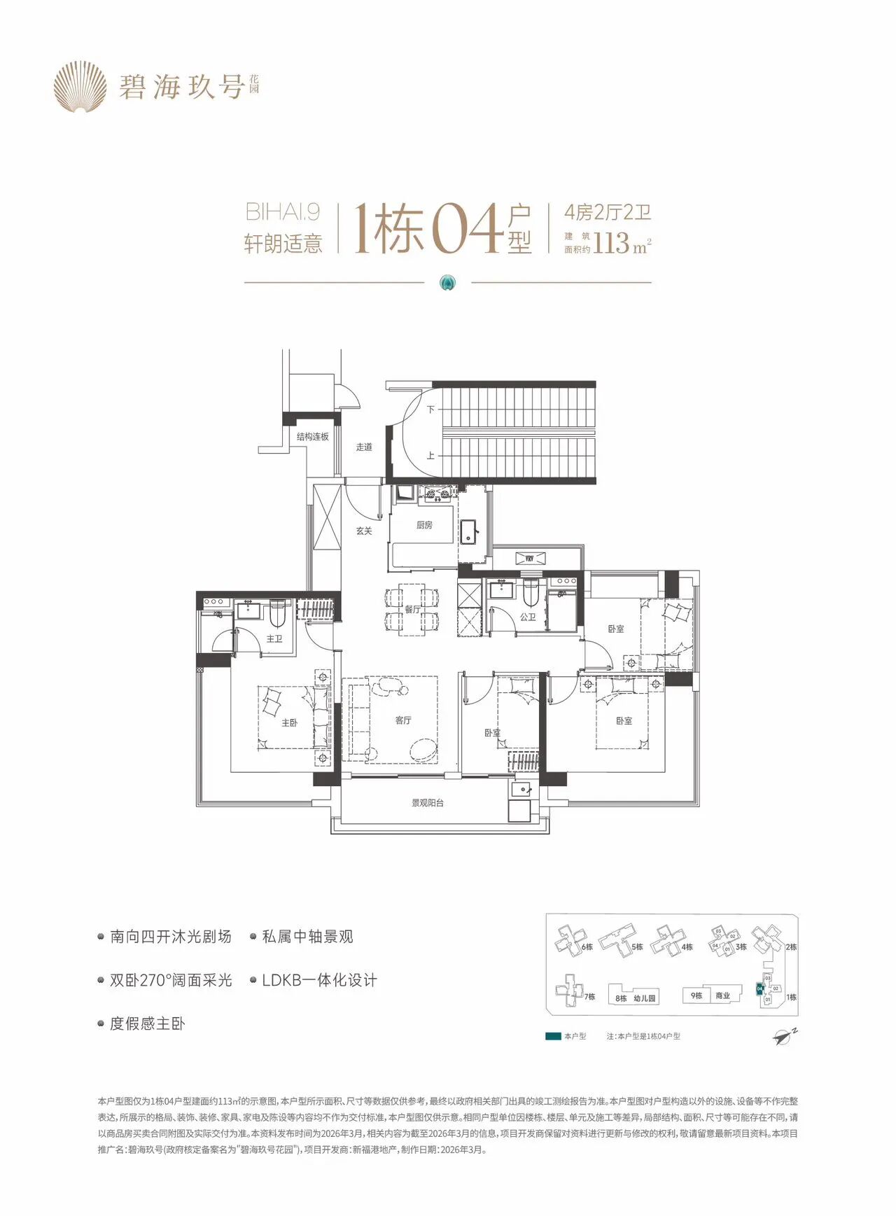 特别说明:本宣传资料为要约邀请,不构成要约和承诺。所示内容仅供参考,一切内容以政府最终批准文件、买卖合同及补充协议为准,如有变化恕不另行通知;本宣传资料文字、图片所表述的内容与实际可能存在一定差异;本宣传资料文字、图片所示内容在建设过程中可能会因政府及其下属单位或公共事业单位的要求等原因而变更;本宣传资料对项目周边环境、交通、商业、公园、医院、文化设施及其他公共设施的介绍,仅供参考,一切以政府相关文件及实际情况为准;本宣传资料关于项目的学区划分和学位申请条件以政府教育主管部门和相关学校的最终文件为准,本公司对此不作承诺,关于学区划分和学位申请的条件须前往主管部门及学校进行咨询。敬请阁下在选择购买房屋前,亲临现场,对周边环境仔细考察后再做购买决策;本公司保留对本宣传资料修改的权利,敬请留意最新资料。项目推广名:碧海玖号,备案名:碧海玖号花园,项目开发公司:深圳市锦新明集团有限公司。制作时间2026年4月。