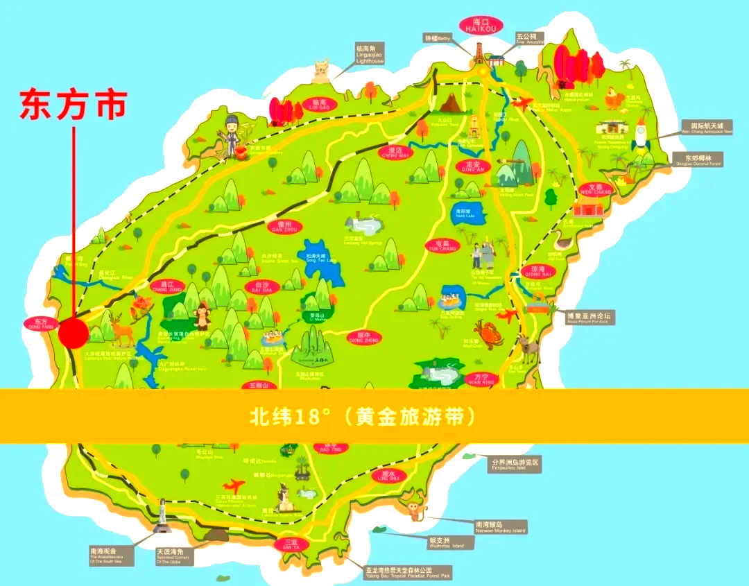 东方市地理位置优越,自然条件得天独厚。属热带季风海洋性气候,日照充足,气候干爽,年平均气温25℃。地势东高西低,由东南向西北倾斜,东部为热带雨林,中部为丘陵和台地,西部为海南最大的感恩平原,海岸线长116公里,有八港七湾。天然良港八所港位于境内,海南环岛铁路、粤海铁路海南西环线以及环岛高速公路、环岛旅游公路穿境而过。