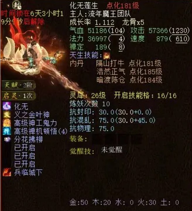 没想到盖子这位大神销声匿迹之后,二队土豪反而撑起了热度大旗,频频消费刷爆玩家的眼球。这次总共只用了八手就修炼出了化无莲生!策划限制土豪一个号每天修3手就是摆设,有钱的话,一个晚上修多少手都没问题。