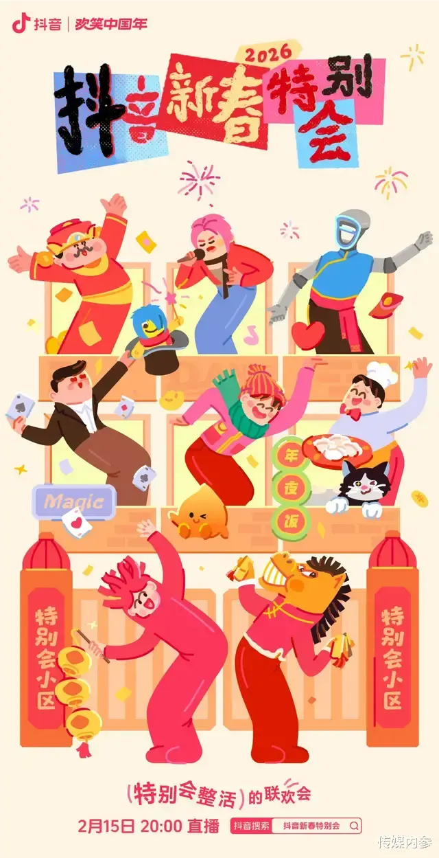 从行业视角来看,当用户对传统春节内容逐渐产生审美疲劳时,“全民共创”逻辑的出现恰逢其时。近年来,各大平台在春节档的竞争日趋激烈,但观众的热情却并未随之水涨船高。究其原因,传统晚会“自上而下”的单向输出模式,让观众始终停留在“看客”的位置,内容与需求之间横亘着一道无形的墙。而“抖音新春特别会”反其道而行之,走出一条“自下而上”的用户驱动路径——不卷排场,只卷快乐、卷共鸣。从2025年IP诞生到今年的价值跃迁,这套模式不仅让晚会在春节内容赛道中脱颖而出,更证明“全民共创”不是昙花一现的创意,而是一种可以被持续验证、持续复制的爆款内容方法论。