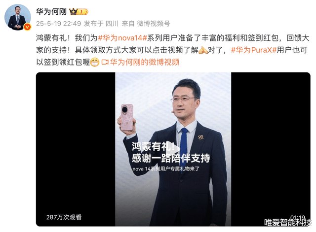 就在这两天,华为何刚还通过微博亲自向用户安利“鸿蒙有礼”活动,足以看出华为真心感谢每一位用户的支持。这些精心准备的福利权益,让用户不仅体验到鸿蒙5的便捷高效,更亲身参与到鸿蒙生态的共建共享中。