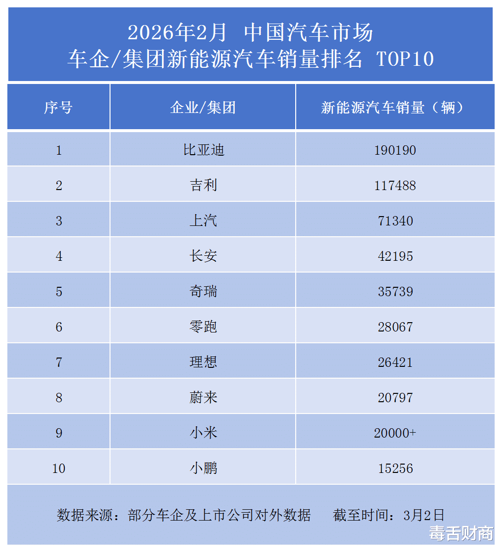 根据比亚迪公布的最新数据,刚刚过去的2月份,比亚迪新能源汽车销量达到190190辆,虽然这个销量跟去年同期相比有较大幅度的下降,但从各大车企公布的新能源汽车销量来看,比亚迪依然是处于断崖式领先的地位。