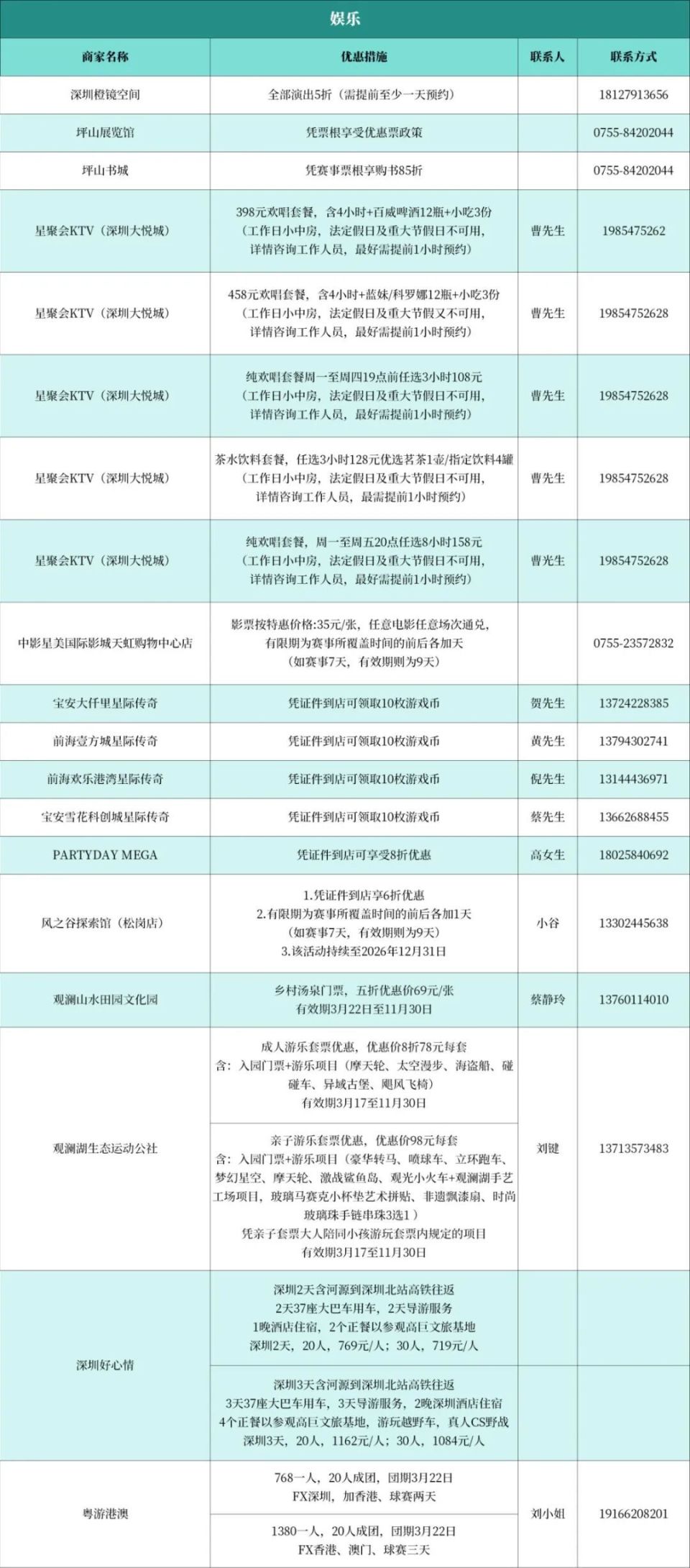 涵盖餐饮、住宿、景区、娱乐等