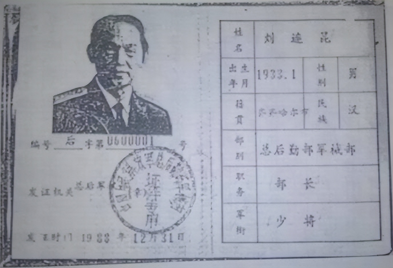 他是黑龙江人,挂着少将的头衔,在解放军总后勤部军械部当部长。