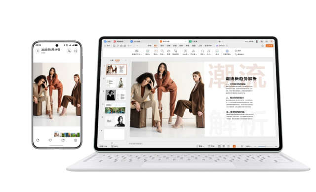 将生产力和创作力完美融合:面向专业创作者,搭载双层OLED云晰柔光屏,配合支持16384级压感的HUAWEI M-Pencil Pro和天生会画App,插画、动画创作可达专业数位板水准;WPS Office、剪映专业版等生产力软件能以完整的PC功能形态运行。