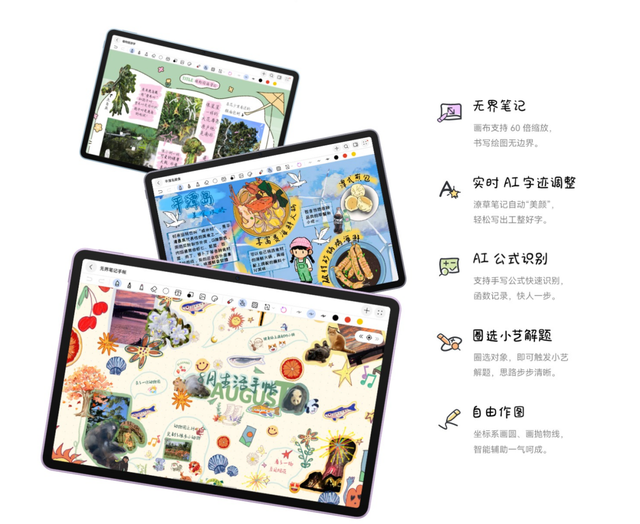 参与本次开学焕新季活动的华为平板,均已搭载或支持升级至最新鸿蒙6系统,整体流畅度和续航能力得到进一步提升。而且,鸿蒙6重点强化了两大核心能力:超级终端与鸿蒙AI,让平板真正成为高效的学习力和生产力核心。