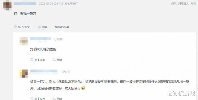 由于Light的表现太过亮眼,三局比赛拿到两次MVP,因此有网友在赛后也是发博调侃:“Light带四C麻!”不得不说尽管此次微博杯或许含金量和关注度都无法与LPL或MSI等官方赛事相提并论,但本届微博杯上的闪亮登场还是让Light得到了更多受众的肯定。只是令观众担心的是如果LPL开战后WBG其他球员的情况仍未改善的话,恐怕很难取得观众所期望的结果。
