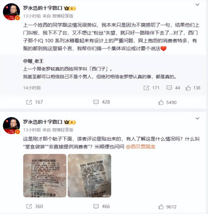 老罗一看这架势,不但没怂,反而在微博上悬赏10万元征集西贝使用预制菜的“真凭实据”