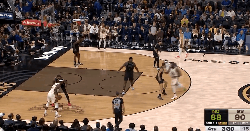 11月30日NBA常规赛,勇士对阵鹈鹕的比赛中。