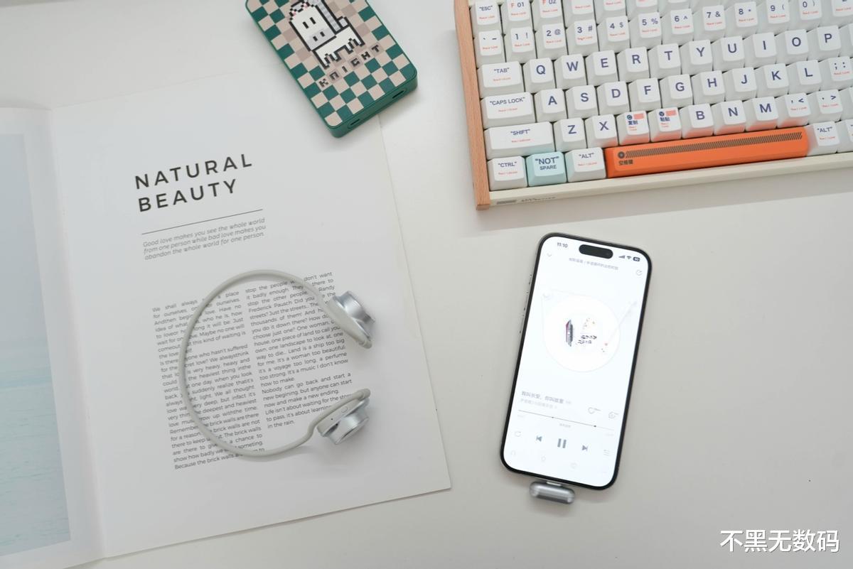 在实际听感上,低频下潜和量感明显优于常见的挂耳或开放式产品,鼓点有冲击力但不浑浊;中频人声位置自然靠前,细节清晰;高频延展顺滑,不刺耳。结合弱水时砂给这款耳机搭载的交叉互馈声学结构,SpeakFeel 的声场表现非常开阔,声音并非“贴着耳道”,而是在耳边自然铺展开来,整体听感更接近一对迷你音箱。