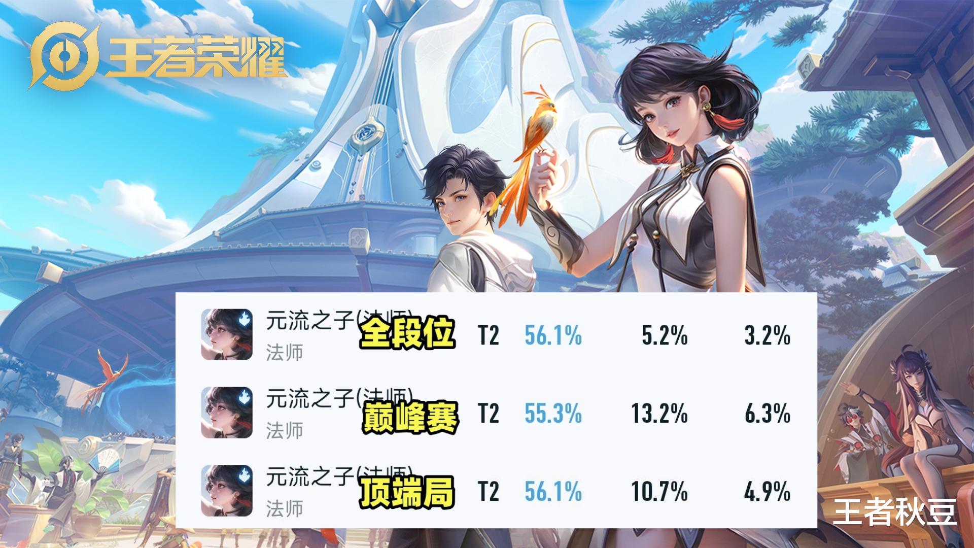 截止到4月7日,元流法师三榜数据惊艳。全段位胜率56.1%,中路第一位!巅峰赛胜率55.3%,中路第一位!登场率还有不低的13.2%。顶端局胜率56.1%,中路第一位,登场率10.7%。元流法师已经是三榜中路法师第一位的英雄,而且越高端的对局,登场率率越高,BAN率也还可以,完全说明元流之子的强度。