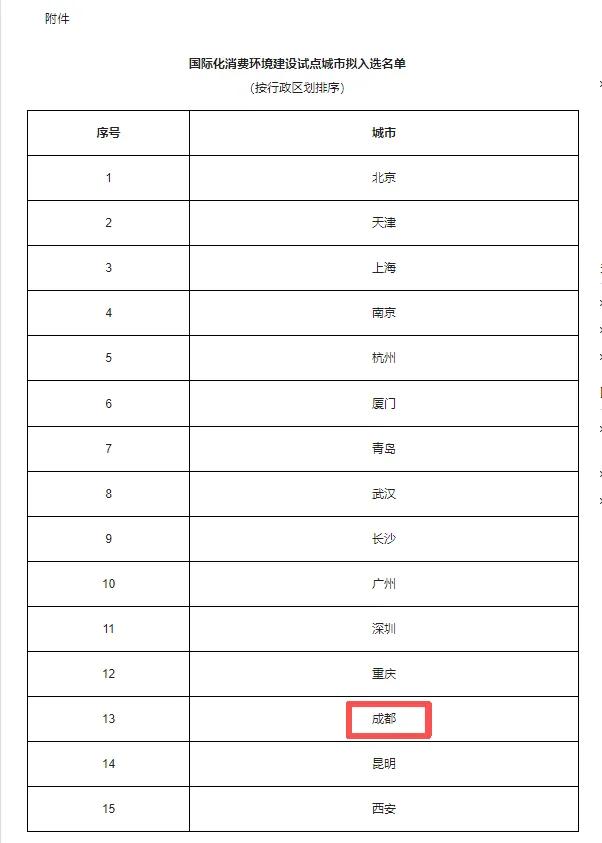 11月20日,商务部网站正式公示“消费新业态新模式新场景试点城市”及“国际化消费环境建设试点城市”拟入选名单,成都双双入围。