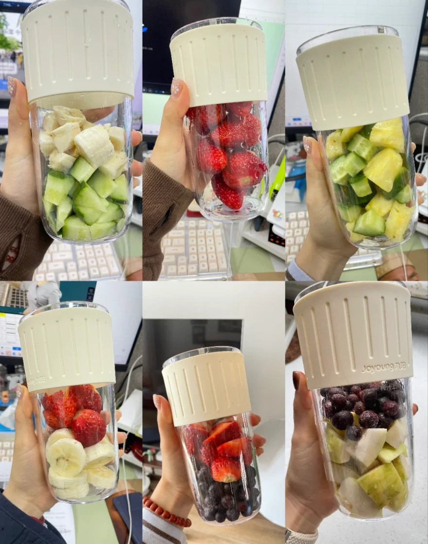 将它充满电,然后装上切块的水果,这样出门的途中,随时可以榨果汁喝。