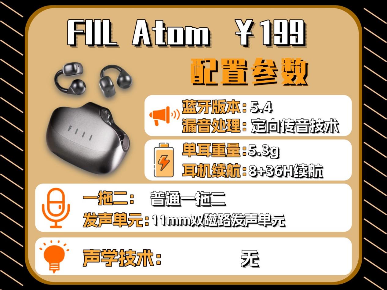 喜欢潮流开放式仓、长续航、方便取放,入门用户追求简约好用 → 选 FIIL Atom(199 元)
