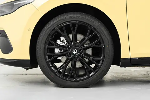 我们在高速行驶时特意体验了一下,宽胎带来的稳定性很明显,就算遇到轻微侧风,车身也不会有明显的晃动,开起来很安心。另外,轮毂的造型也很有设计感,多辐式的设计搭配黑色涂装,进一步强化了车辆的运动氛围,从侧面看过去,整车的比例更协调。