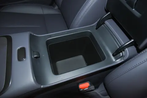 车辆的储物空间设计也很用心,全车共有25个储物点,每个都很实用。前门板能轻松放下大水瓶和雨伞,后门板有专门的手机放置槽,随手就能拿到。中控扶手箱是双层设计,上层还配备了50W无线快充,手机放上去就能自动充电,不用额外插线,很方便。手套箱的容积也很大,小宇14英寸的笔记本电脑放进去都没问题,出差带电脑再也不用放在副驾驶座上了。车内还有一块1.02㎡的全景天幕,打开遮阳帘后,车内特别通透,晚上开车还能看星星。这块天幕能隔绝99.9%的紫外线,遮阳帘是100%物理遮阳,中午太阳大的时候,拉上遮阳帘后,车内温度能比外面低5度左右,不过夏天长时间暴晒后,还是建议贴个遮阳膜,上车时会更舒服。