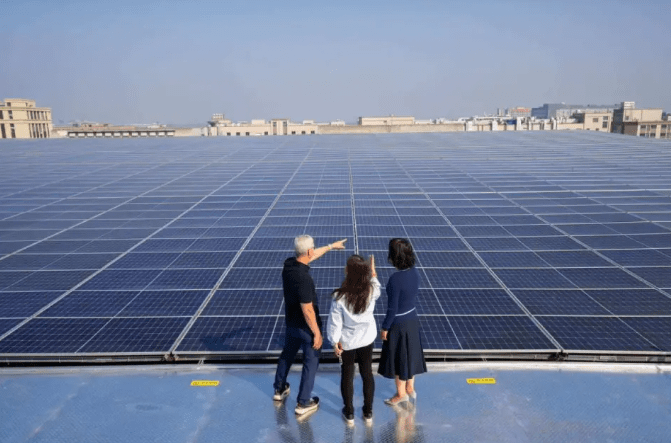 立讯精密工厂背后支持这些生产线运作的是多项清洁能源举措。工厂屋顶铺设了大面积的光伏发电板,以获取太阳能等清洁能源,为生产线提供动力。