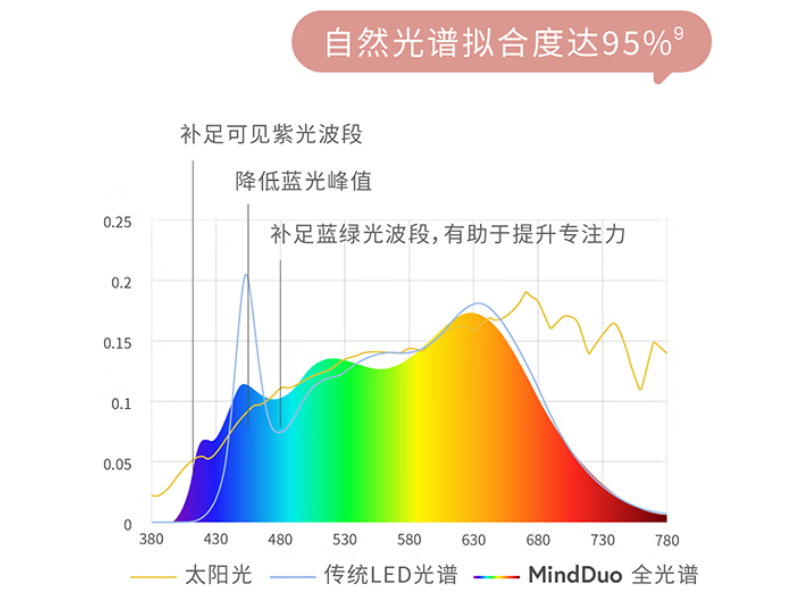 它所搭载的光源可不简单,运用的是经科学验证的全光谱技术,还联合专业机构精心优化光配方。光谱分布的拟合度高达95%,补全了有益可见紫光波段,让整个光谱更加连续平滑,就像一条没有坑洼的道路,光线传播得顺畅又自然。有实验证实,在这柔和的光下,眼部疲劳能显著减少4.3倍。同时,这光还能提升色彩分辨度,让看到的世界更加色彩斑斓,视觉舒适度也跟着直线上升。更妙的是,它符合人体生理节律需求,在学习的时候,能助力提升专注度。