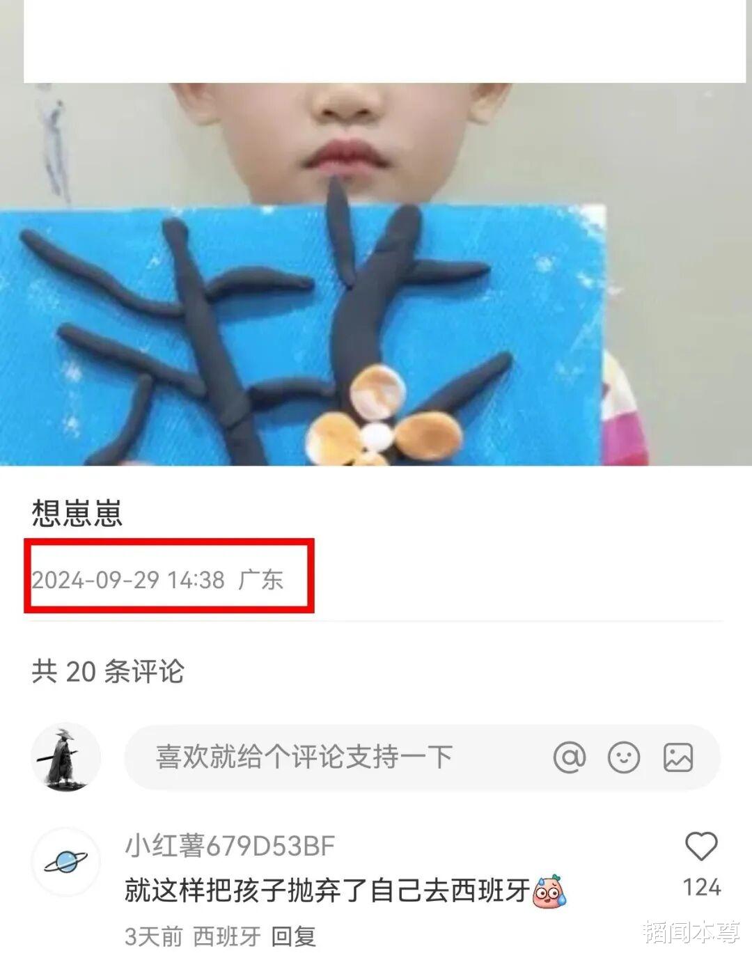 然后,这个女子的“小红书”账户时间就直接跳到了今年的10月10日,IP 地址换成了西班牙,她发的帖子是她目前在西班牙,嫁了个西班牙男人,她的西班牙丈夫给她买了好多衣服,说她的西班牙老公对她说爱她。