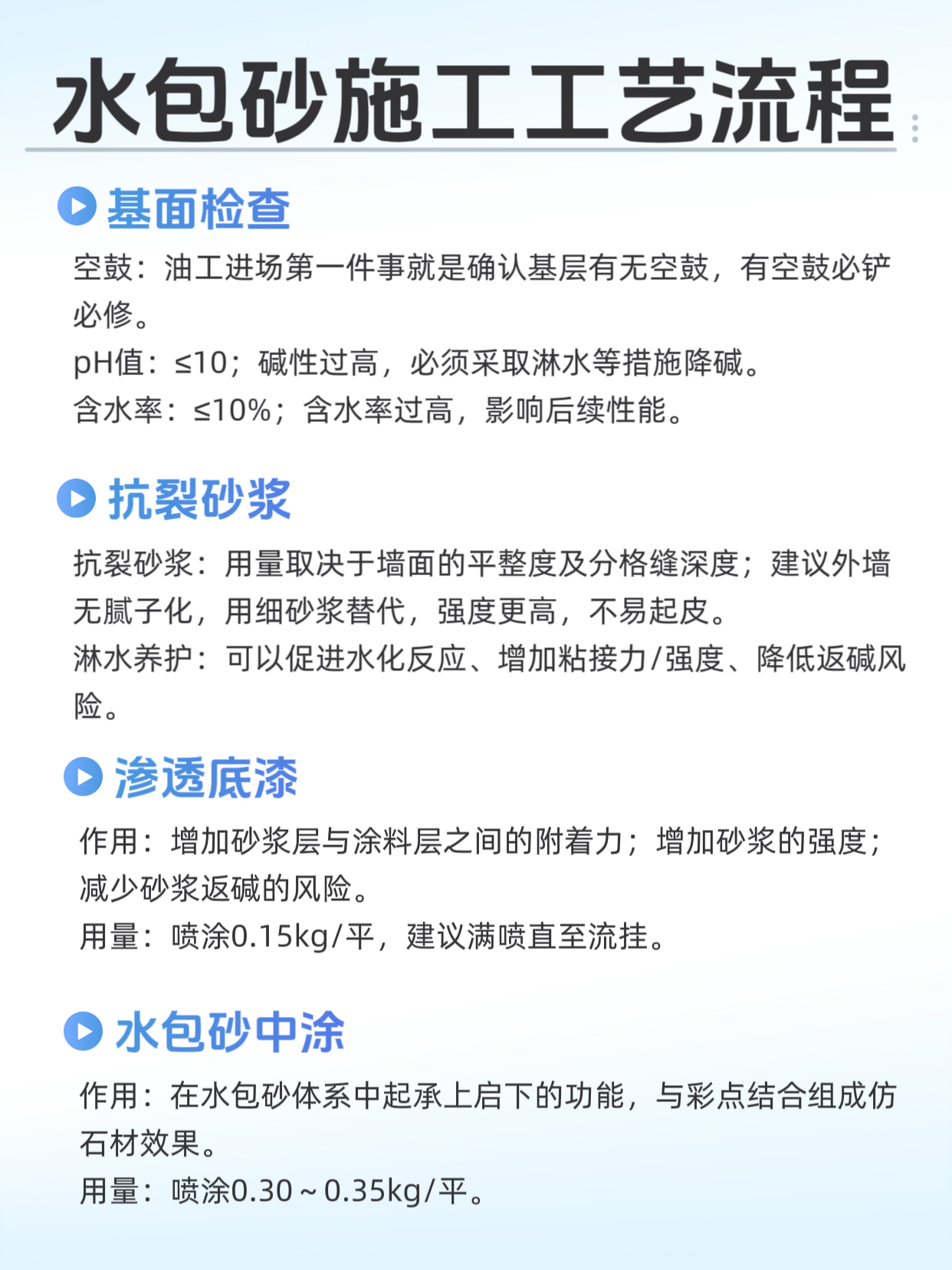 喷涂渗透型透明底漆,用量0.15kg/平,建议满喷直至流挂,让砂浆层充分吸收底漆。