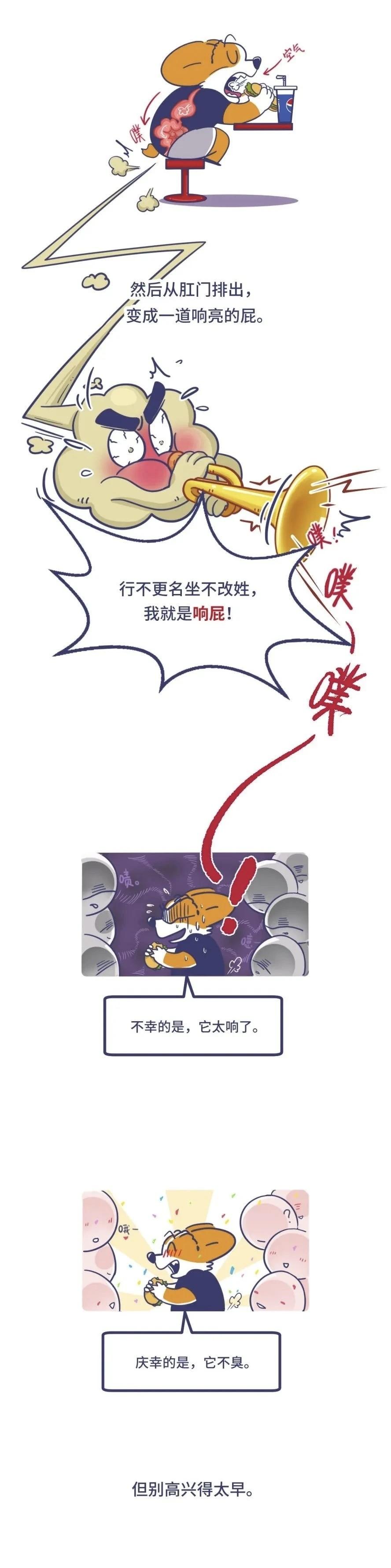 减少臭味:屁臭源于含硫化合物(如硫化氢)。少吃肉类、豆制品、韭菜、洋葱等含硫高的食物,多吃清淡食物。减少响声:屁响取决于排出速度和肛门括约肌松紧度,可选择: 增大空间:坐着时侧倾身体,抬一半屁股放松菊花;站着时找支撑转移重心,放松臀部悄悄放。 减缓气流:想放时憋 10 秒,等屁流变缓后慢慢释放,避免连环屁。五、放屁的社会学思考放屁与社死的根源是羞耻心,东西方都忌讳放屁:摩洛哥有人因屁自杀,日本有 “屁付比丘尼” 为千金背锅。2007 年硕士论文指出,上层用礼仪区分阶层,放屁被贴否定标签。但放屁是基本生理需求,不必因屁分心 —— 我的身体我做主!