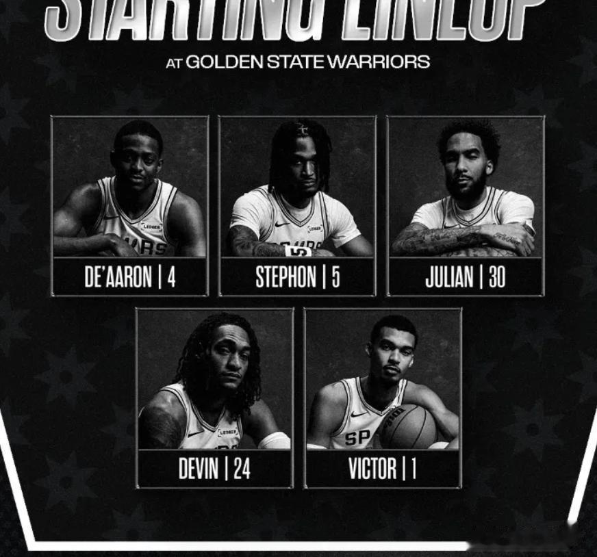 首发阵容方面,马刺队这边,科内特缺阵,主帅排出的最新首发五人组为:福克斯、卡斯尔、尚帕尼、瓦塞尔、文班亚马;勇士队这边,库里(右膝髌股疼痛综合征)、波尔津吉斯(生病)、巴特勒(膝盖)、霍福德(右比目鱼肌扭伤)、梅尔顿(左手拇指扭伤)、波斯特(右脚伤病)、桑托斯(右骨盆挫伤)、摩西·穆迪(膝伤)等八大主力缺阵,首发阵容为:克莱尔、波杰姆斯基、理查德、内特-威廉姆斯、追梦-格林。