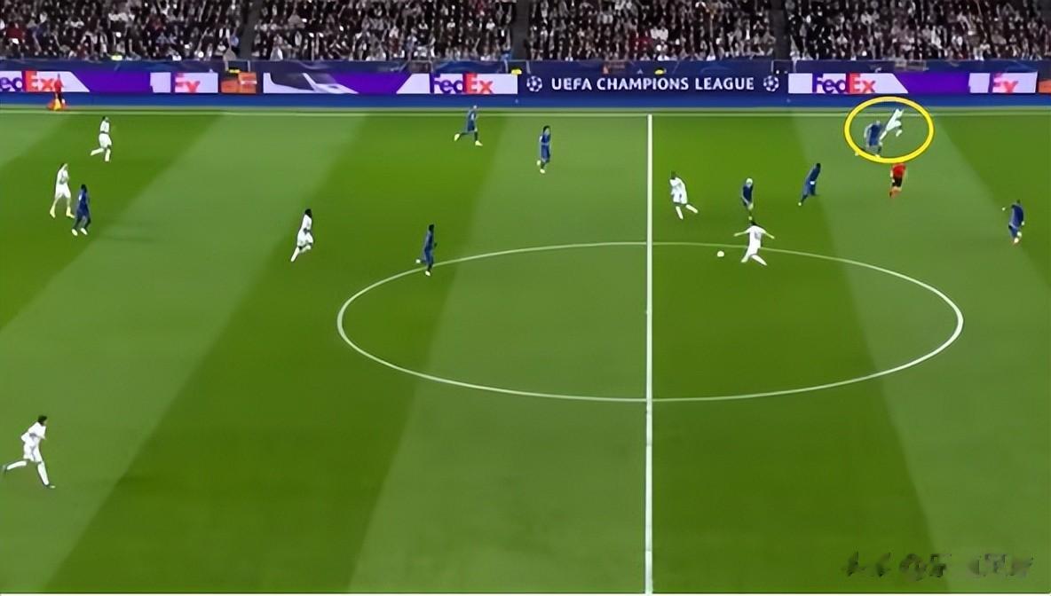 皇马防守时全队一起移动,把空间压得很小,没有之前那种一碰就碎的感觉。维尼修斯和姆巴佩在前面带头压迫,干扰对手出球,后面的人立刻跟上。
