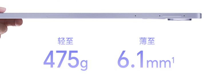 同时整机非常轻薄,重量只有475g,厚度只有6.1mm。