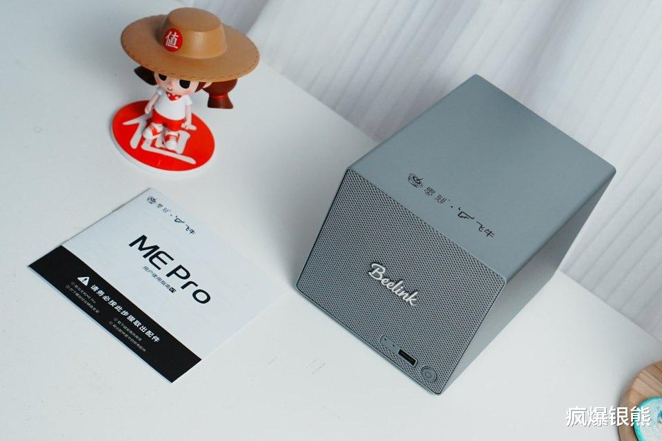 作为一款5盘位NAS(双3.5英寸机械硬盘+三SSD固态硬盘组合),零刻ME PRO给我的第一印象就是小巧精致,整机尺寸仅166×121×112mm,只比普通手机长一点,和我的张小草一般高。