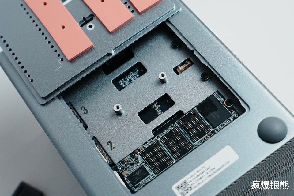 另外2个SSD固态硬盘安装位支持单条最高4TB的固态硬盘扩展,厂家贴心的还为每一个SSD安装位粘贴了散热硅脂。零刻ME PRO一共有两个版本,除了笔者手里的LPDDR5 12G+128G存储版本(预装飞牛系统+5年商业版会员赠送)外,其还有一个不带SSD的版本,二者差价在151左右,如果你手里有SSD也可以考虑这个版本。