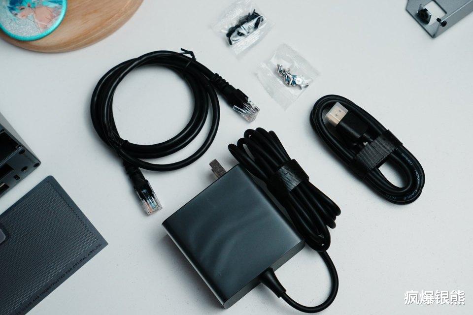 配件方面有电源适配器(一体式设计即小巧又精致很不错)、HDMI线、网线、两包硬盘固定螺丝及说明书。