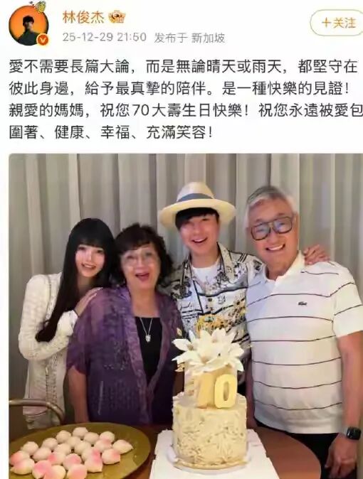 如今林俊杰选择在母亲70岁生日公开女友的照片,并配文“爱不需要长篇大论,而是无论晴天或雨天,都坚守在彼此身边,给予最真挚的陪伴”。