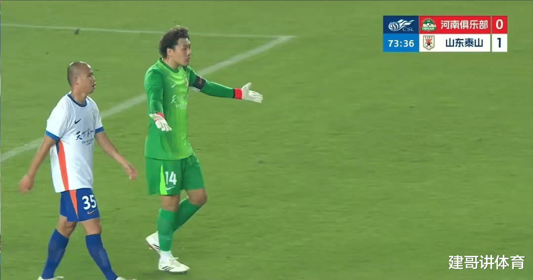 每当河南队主罚角球的时候,王大雷的身前和左右都会站着泰山队的高个子球员,这样情况之前是没有的,泰山队的这个防守高空球的变化,也导致了河南队的角球都没有和王大雷见面,就被提前破坏掉,纵观河南队的所有角球,不是被早就站住位置的泰山队高大球员顶出边线,就是被顶到前场,让河南队的定位球再也没有重演云南玉昆和大连英博的进球一幕。