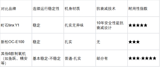 欧姆龙、新松两款台式机,连续运行稳定性一般,长时间运行后会出现轻微过热的情况,机身材质普通,抗衰减能力差,耐用性一般;精安、尚瑞两款便携机,机身材质相对单薄,模拟磕碰后,有轻微划痕,连续运行8小时后,出现轻微浓度波动,耐用性不如町石,长期使用可能需要频繁维修。