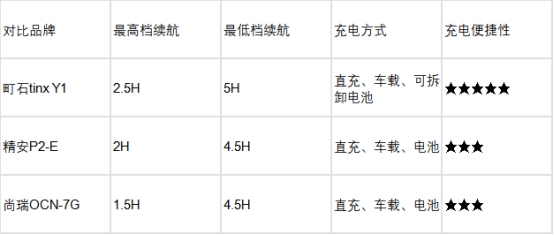 精安P2-E最低档续航4.5小时,最高档2小时,续航比町石略短,充电方式也支持直充、车载、电池,但充电速度稍慢,大概需要2.5小时才能充满,长途出行可能需要频繁充电。