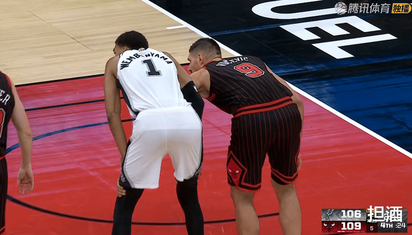 暂停回来,公牛进攻未果,文班单打武切维奇,可惜这一次也是打铁,许尔特三分命中,帮助公牛稳住局势。