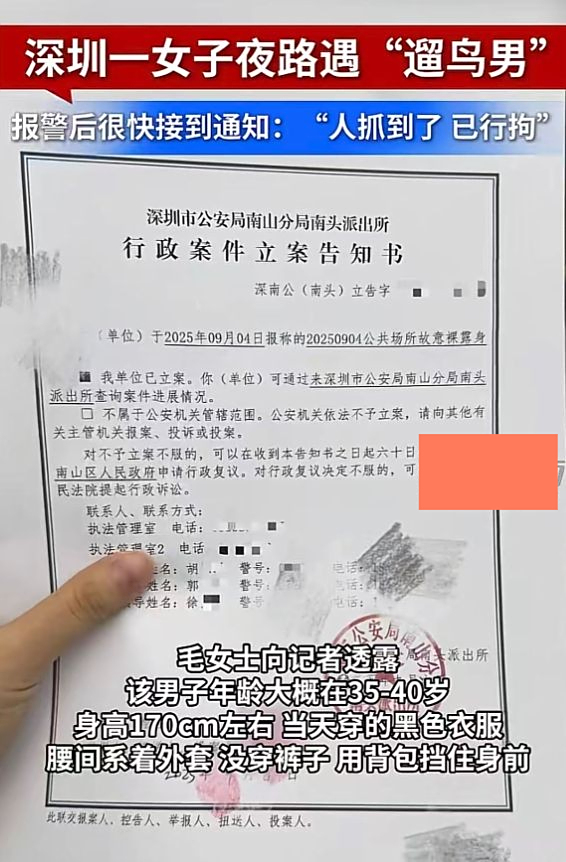 最终,这名男子被深圳警方以在公共场合故意裸露身体被处理,毛女士表示,没想到警方处置得如此之快,让自己感觉在深圳这个城市生活很有安全感。