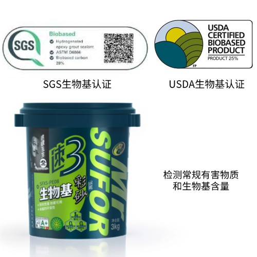 两者都是生物基美缝的品质验证。SGS不仅检测常规有害物质,还针对生物基美缝剂开展生物基碳含量测试。USDA要求生物基含量≥25%,速缝先生率先突破行业标准,生物基美缝剂含量达26%,通过USDA