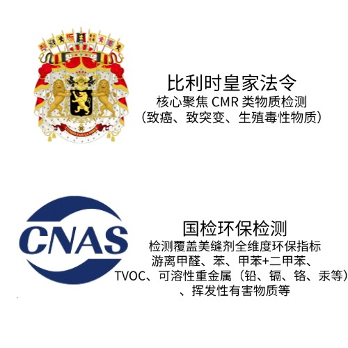 侧重CMR类物质(致突变、生殖毒性物质)检测。这类物质常规认证很少覆盖,而比利时皇家法令明确禁止美缝剂中添加此类物质,对苯、甲醛、重金属及生殖毒性物质的限值远超欧盟普通标准。