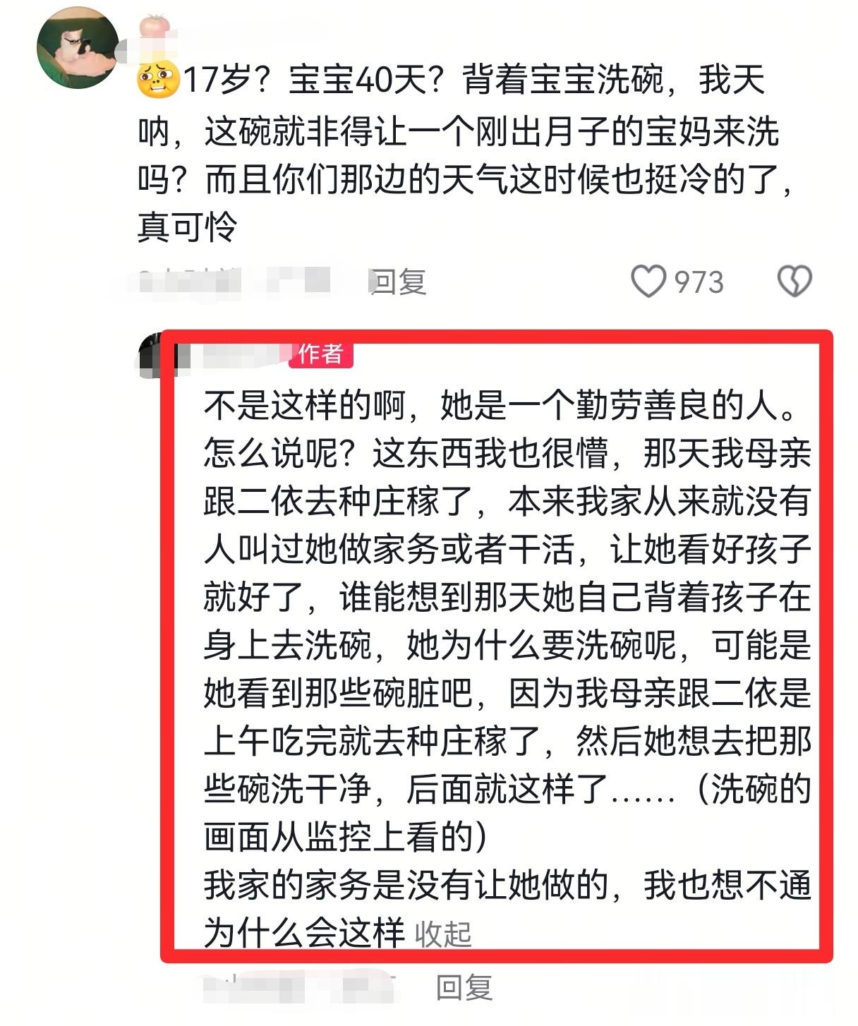 17岁,孩子满月,背着孩子洗碗,死亡,这几个关键词连在一起,真的很难让人接受。