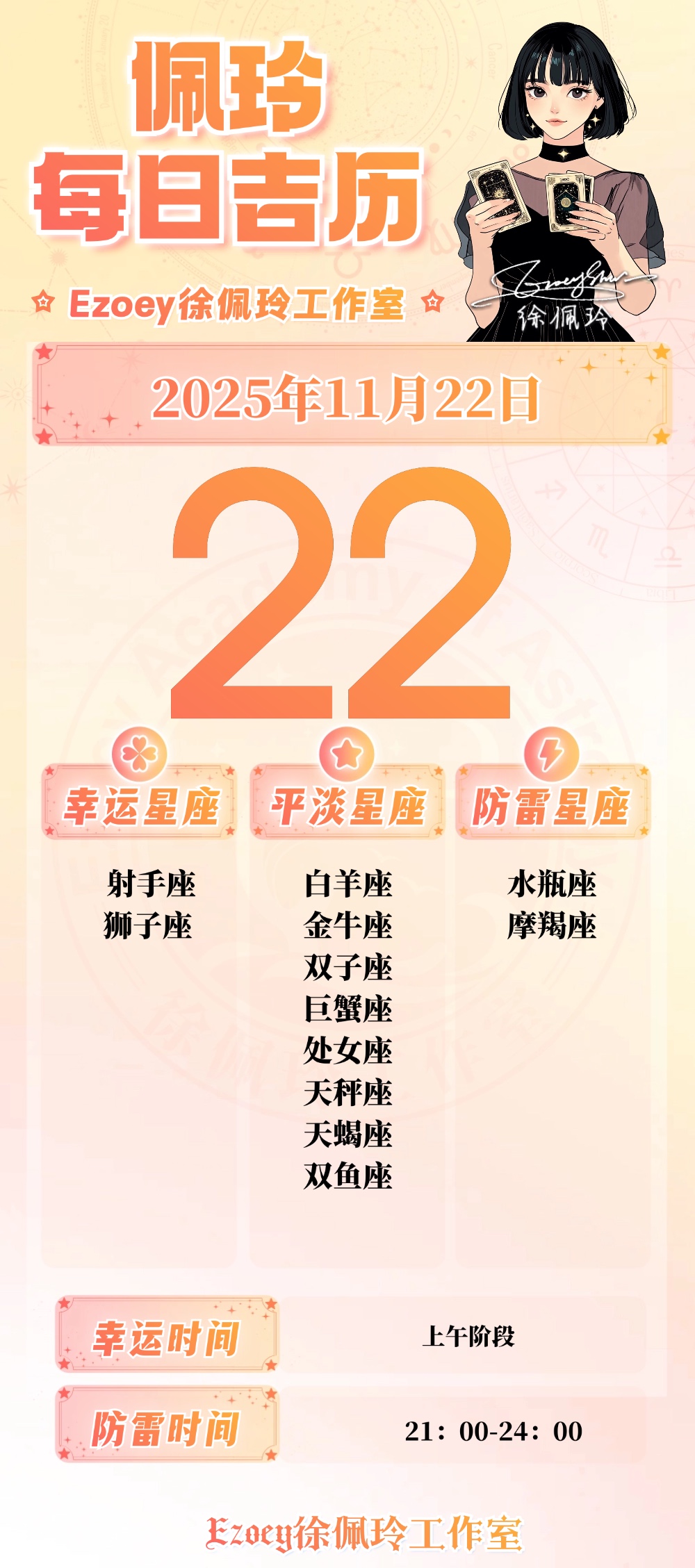 【11.22日播报】幸运星座:狮子座、射手座、天蝎座、金牛座、 天秤座、摩羯座——Ezoey徐佩玲25年星座播报