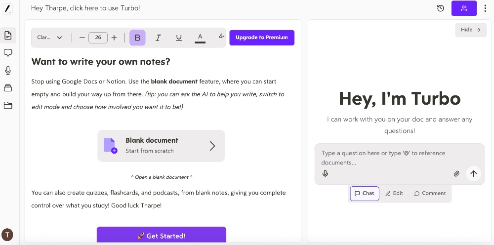 Turbo AI的前身叫Turbolearn AI,这个应用能够将录音、视频、文件转化成笔记,用户可以在此基础上进行修改,还能生成测试题。