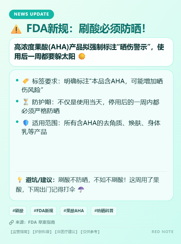 相关: FDA 1992年即要求高浓度果酸产品附带防晒警示,此次更新强化执行力度