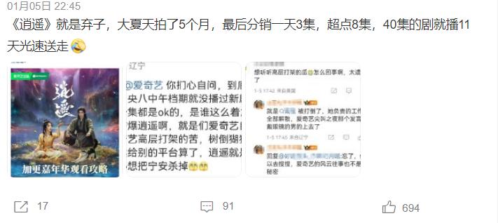 一部剧开播后,口碑要进行发酵,所以很多剧都会出现,刚开始连续更新,中间会选择单更,但《逍遥》却非常良心,直接快速播出,连续更新,这对于观众们来说,绝对是一件值得开心的事情,可是这样的更新方式,带来的问题就是剧的热度不够高,我们可以看到,这部剧的热度才突破8000+。
