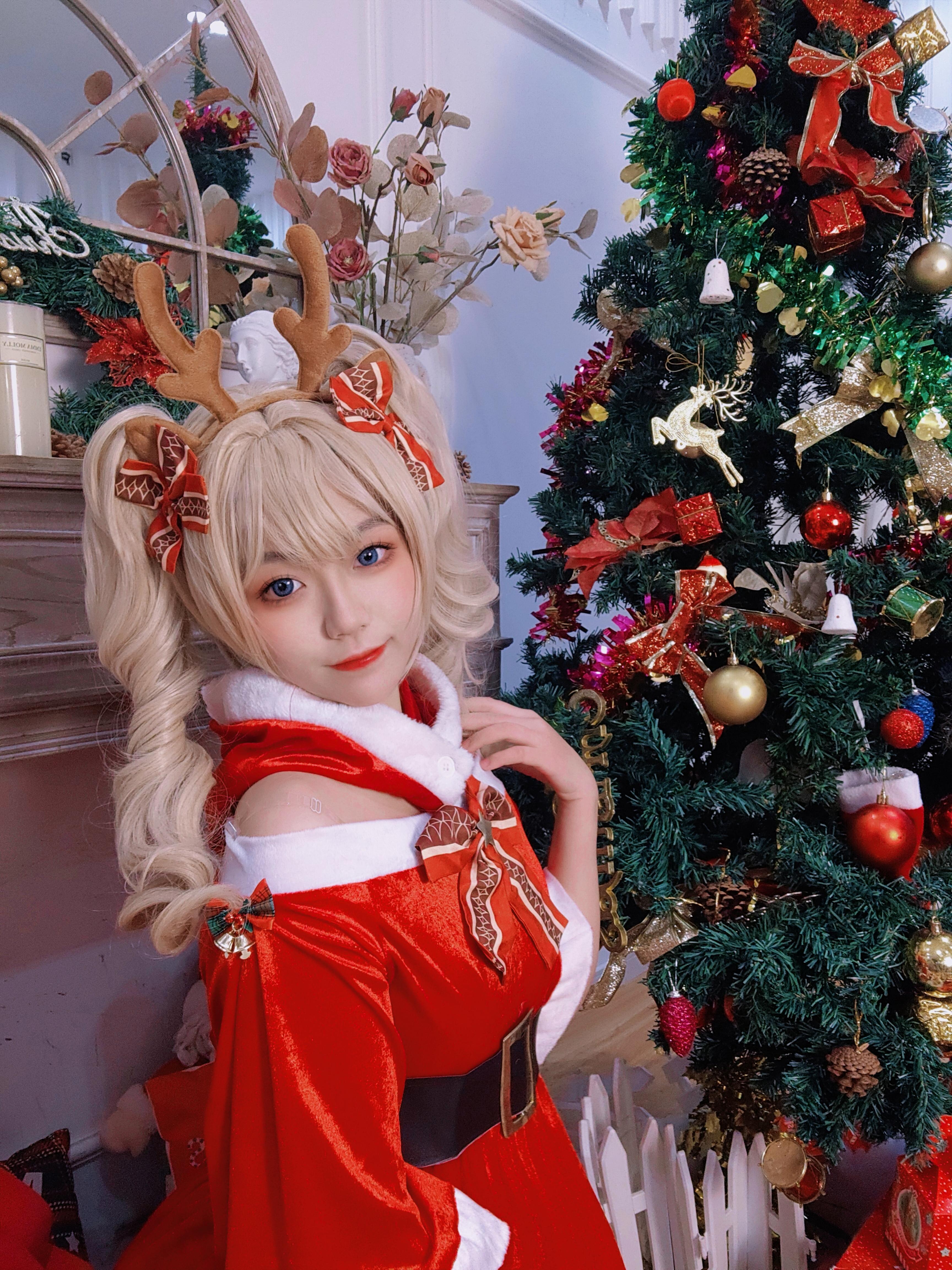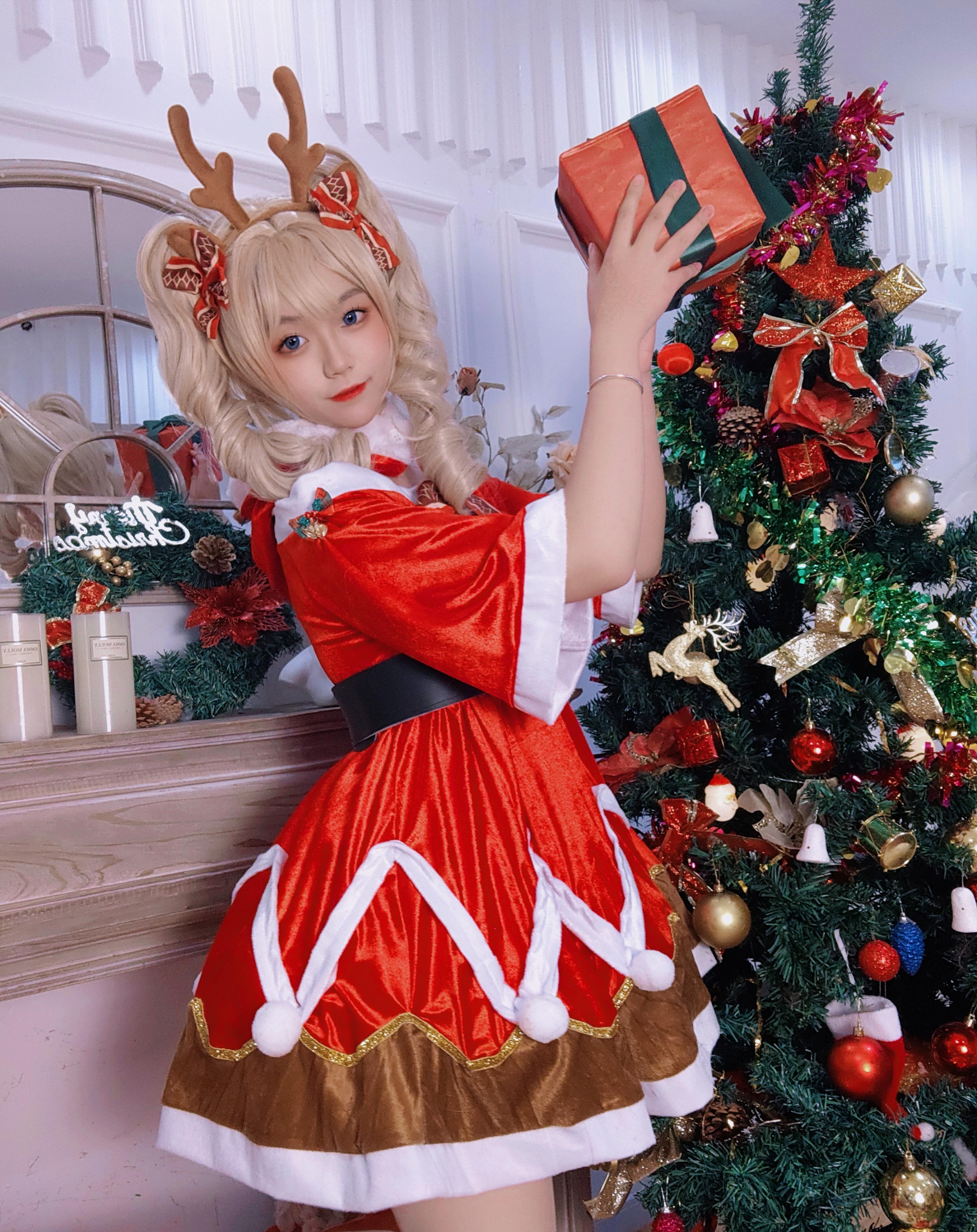 今天推荐的COSPLAY作品来自手机游戏《原神》中的4星水系角色“芭芭拉”的圣诞装形象。