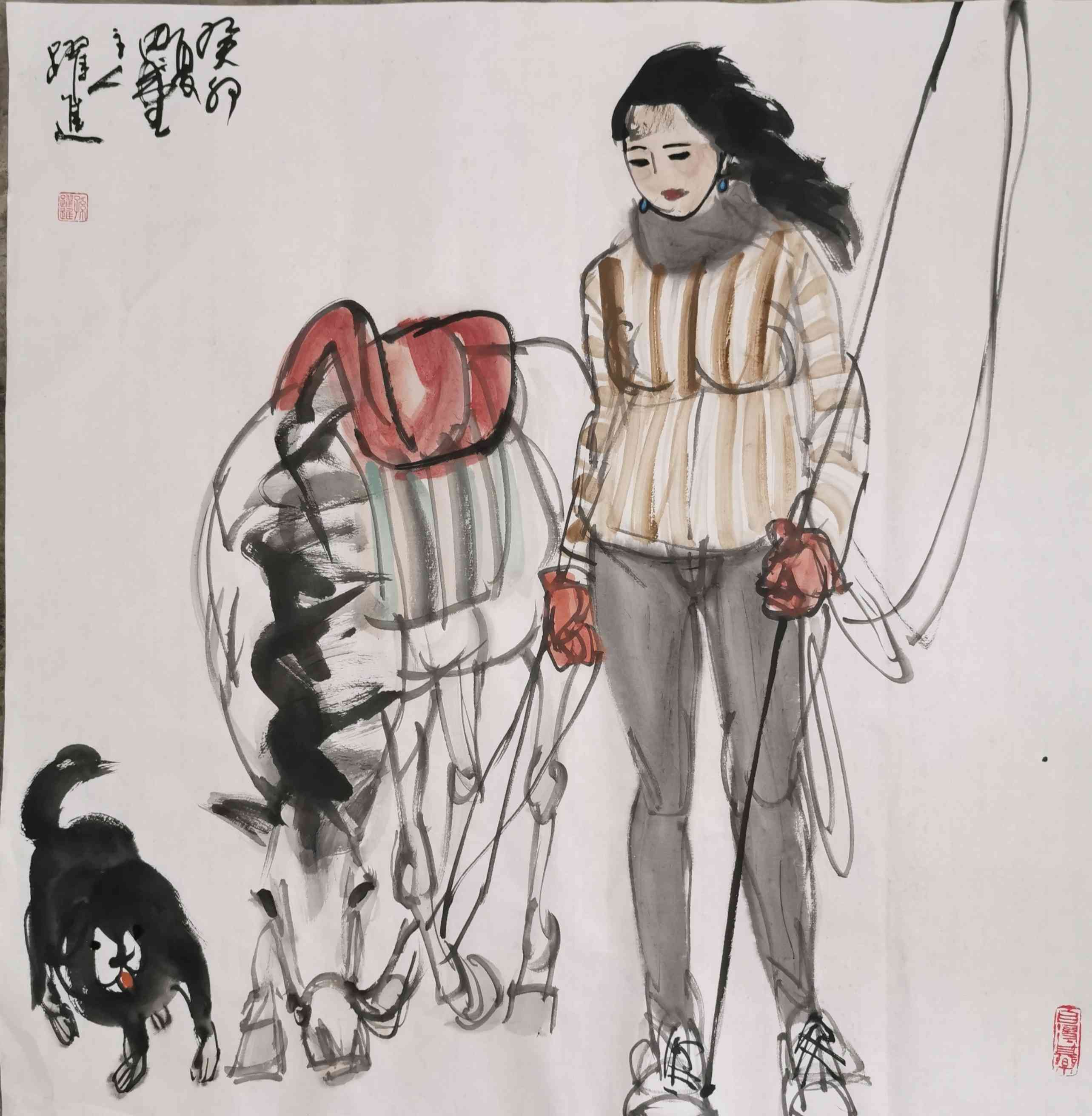 古人论丹青,讲究形神兼备,因有型而精彩,因有神而上品。当代著名画家孙跃进先生,研习写意国画人物得真经,就是一-位形神兼备传承丹青真经的大手笔。他的绘画艺术横跨人物动植两大门类,写意物象夺其精神掠其体貌,形神兼成,令人赏心悦目,显示出妙有华姿的精神品貌。当代画家修习中国传统绘画艺术,有诸多不同目的。不同目的,导致书画品位与收获各不相同。有的画家以画而谋生,多为匠工。有的画家以画逐名,多为俗气。还有的画家以自娱为目的,多显肤浅。唯有把丹青艺术当成修身养性的陶冶,方可以像著名画家孙跃进先生这样,收获画如其人的正宗造诣。孙跃进先生精心研习书画艺术,无俗利之逐取,无虛名之追求,亦不以绘画而谋生活,所以他的丹青修炼,完全是出于修身养性,陶冶情操的目的。目的纯粹,画风超脱。纵观他的绘画作品,无一例外,都显发着丹青无挂碍,清许质如泉的透彻与明净。他毕业于中央美术学院徐悲鸿画院研修班,有着深厚的笔墨理论涵养,所以对外师造化中得心源法则理解特别深刻,实践特别执着。观人物姿态,心穷万物之源,不但是他的艺术目标,也是一-场永无止境的丹青修行。他能沟通心源与造化的双向对流,别人熟视无睹的人物景象,可以成为他描述人物造意的心灵感触。