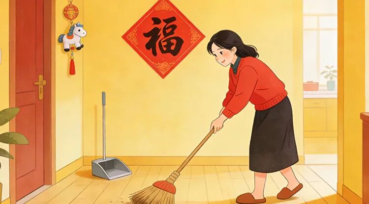 “五穷”指智穷、学穷、文穷、命穷、交穷,象征一切阻碍发展的负能量。初五清晨,家家户户彻底清扫——从除夕积攒的垃圾、废旧物品,到角落灰尘,一并清除,谓之“送穷出门”。