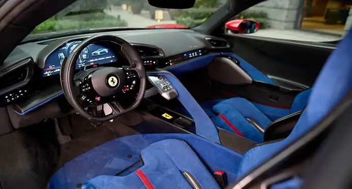 进入座舱,法拉利849 Testarossa巧妙地将Berlinetta车型的空间布局与单座赛车的战斗氛围相结合。水平延伸的仪表盘设计强化了驾驶者的核心感,座舱的包裹性与人体工程学相比前代显著进步,让人如同被精密仪器环抱。中央区域的帆形面板整合了换挡机构,布局更显考究。全新方向盘保留了包括经典红色启动按钮在内的实体按键,赋予驾驶最直接纯粹的反馈。升级后的人机交互界面操作更为直观,同时支持Apple CarPlay与手机无线充电,在极致专注与日常便利间取得平衡。MyFerrari Connect系统则让车主能够随时与爱车互联,远程掌控车辆状态。
