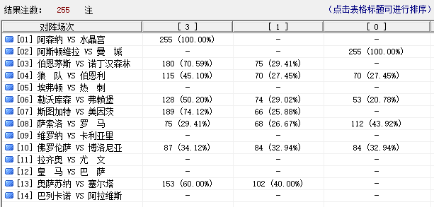 具体对阵及个人即时更新选单场次基础310个数及连续性设置编组场次倾向性设置、大编组场次冷门设置个人命中设置、0-1的精确